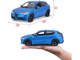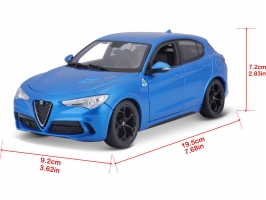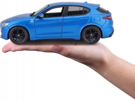 Kovový model auta 1:24 Bburago 18-21086 Alfa Romeo Stelvio modrá, nejen pro sběratele. Má otevírací dveře a je v detailním provedení. Barva modelu je modrá metalíza.