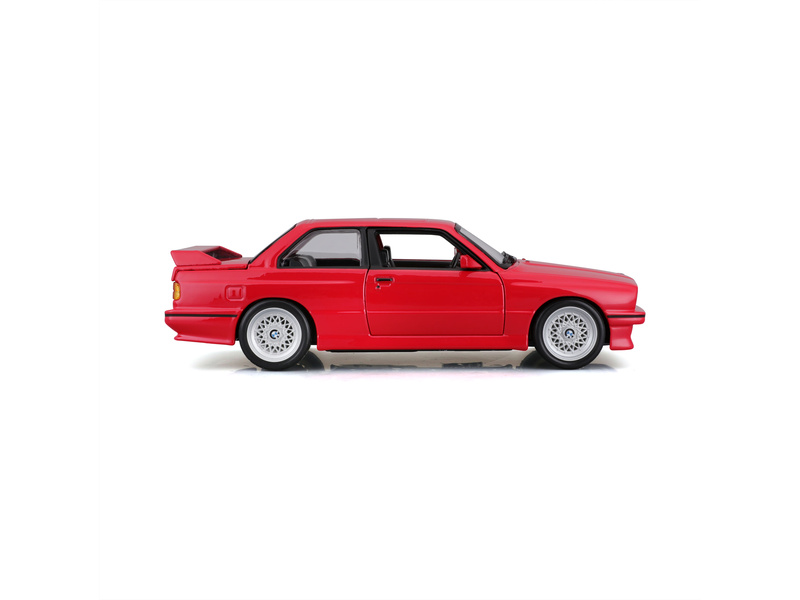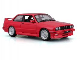 Kovový model auta 1:24 Bburago 18-21100 BMW 3 Series M3 1988 nejen pro sběratele. Má otevírací dveře, barva modelu je červená.