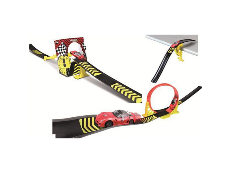 Uspořádej závody Ferrari aut ve svém pokojíčku ještě dnes. S touto závodní dráhou Bburago 18-31215 Ferrari Single Loop s autíčkem v měřítku 1:43 ( přibližně 10 cm velké ) si to pořádně užijete. Stačí připevnit trať třeba na hranu stolu díky utahovacímu držáku a spustit autíčko po trati dolů. Autíčko se rozjíždí z výšky díky tomu nabírá rychlost, aby cestou zvládl udělat lopink, ještě si skočí se skokánku a hurá do cíle.
