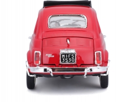 Kovový model auta 1:24 Bburago 18-22099 Fiat 500L z roku 1968 nejen pro sběratele. Model má otevírací dveře a kapotu, natáčení kol volantem je plně funkční. Barva modelu je červená a je přibližně 18 cm velký.