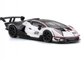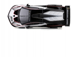 Kovový model auta 1:32 Bburago 18-41161 Lamborghini Essenza SCV12 nejen pro sběratele. Model je asi 13 cm velký a má černou a bílou barvu se závodním číslem. Model je v detailním provedení, skvělá úroveň zpracování.