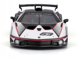 Kovový model auta 1:32 Bburago 18-41161 Lamborghini Essenza SCV12 nejen pro sběratele. Model je v černé a bílé barvě se závodním číslem.