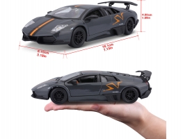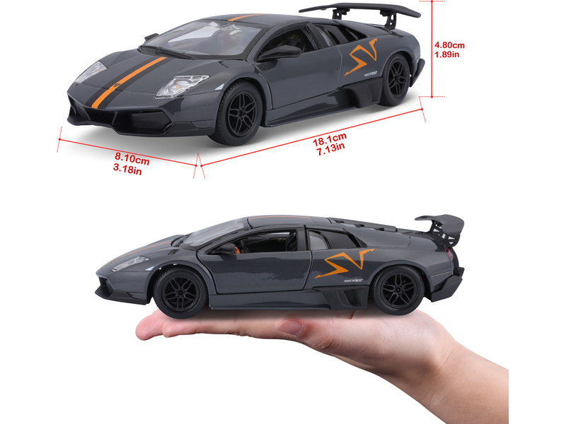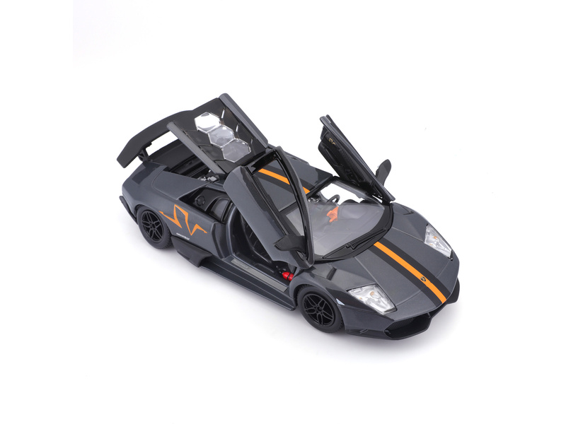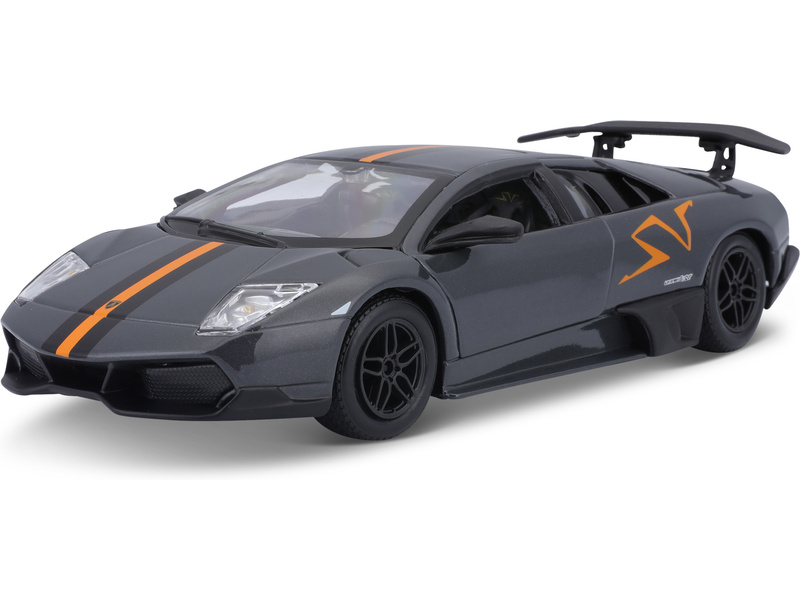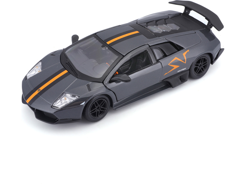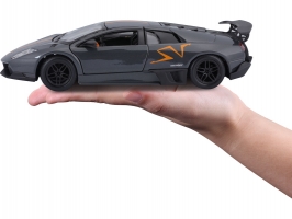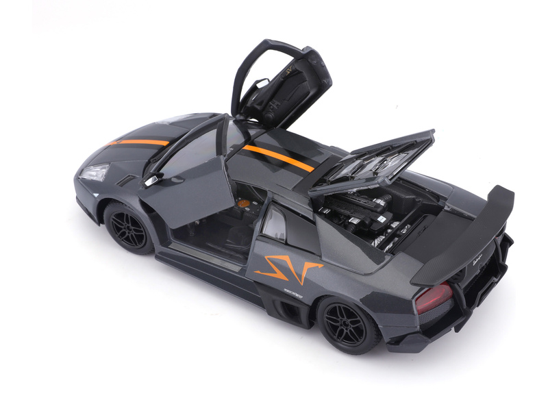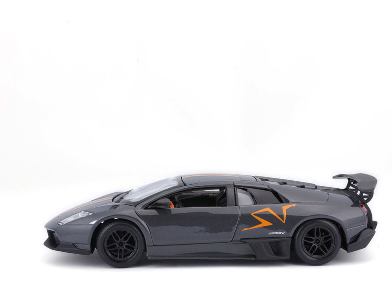 Kovový model auta 1:24 Bburago 18-22120 Lamborghini Murciélago LP 670-4 SV China Limited Edition nejen pro sběratele. Má otevírací dveře a kapotu, natáčení kol volantem je plně funkční. Barva modelu je šedá metalíza a velký je přibližně 19 cm.