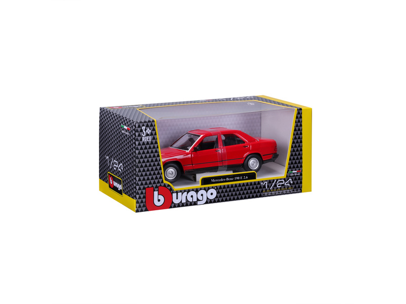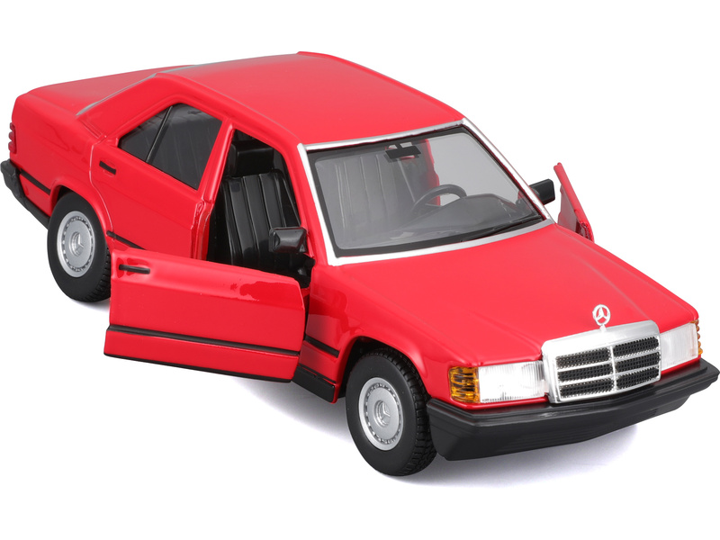 Kovový model Bburago Mercedes-Benz 190E 1987 nejen pro sběratele. Detailní provedení, přívětivá cena, barva červená.