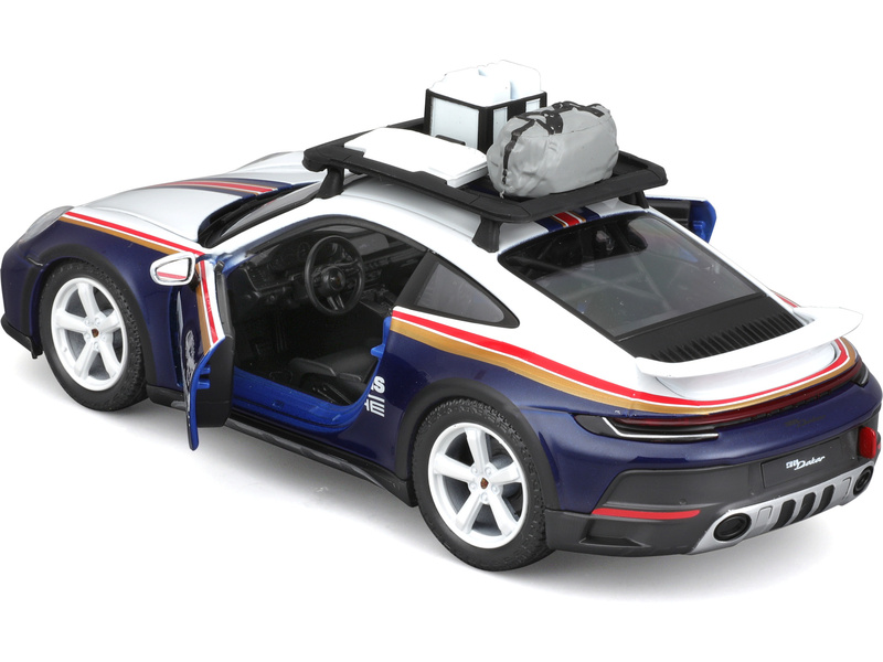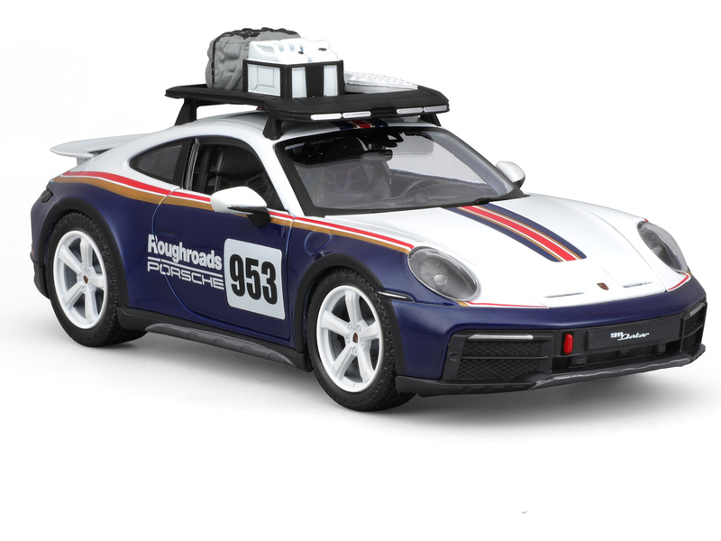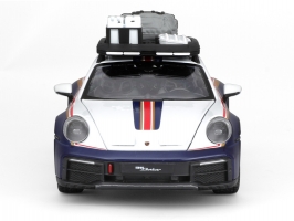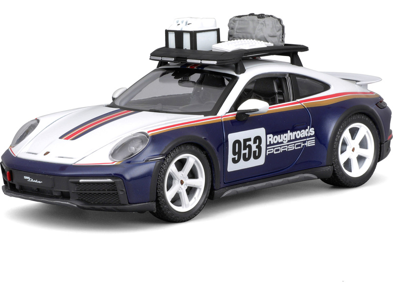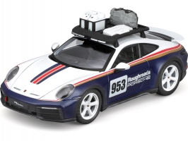 Kovový model auta 1:24 Bburago 18-28029 Porsche 911 Dakar 953 Roughroads nejen pro sběratele. Je přibližně 19 cm velký.