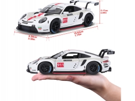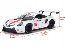 Kovový model auta Bburago 18-28013 Porsche 911 RSR GT v měřítku 1:24 je dodáván v papírové krabičce. Barva modelu je v závodnickém provedení.