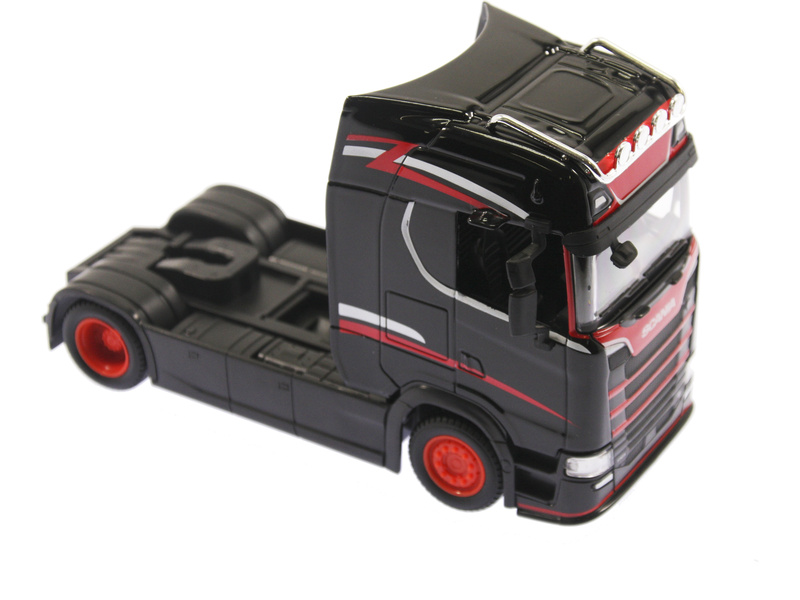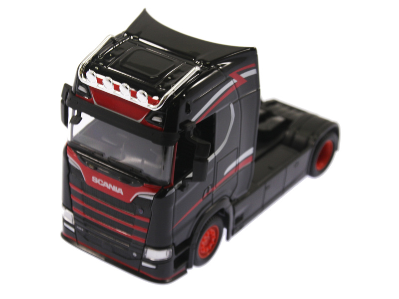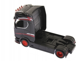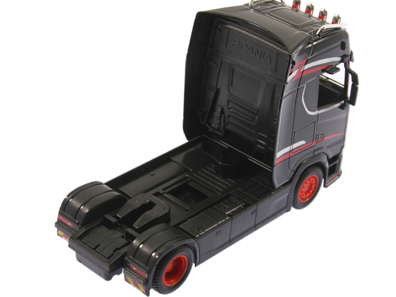 Kovový model Bburago 18-32207 - Scania 770S v měřítku 1:43. Je vyroben z kovových a plastových dílů v detailním zpracování. Scania je přibližně 15 cm velký a můžete k němu připojit návěs. Barva modelu je šedá.