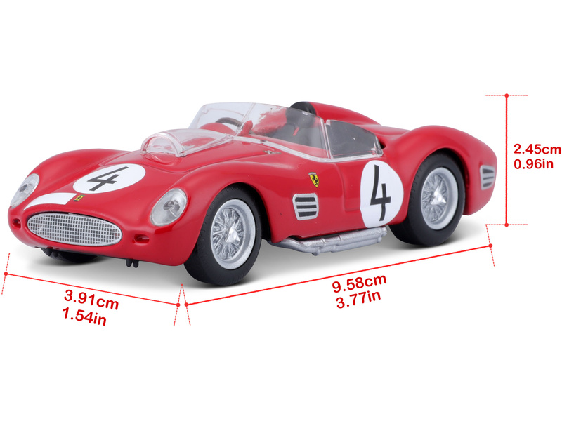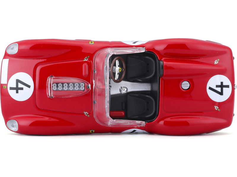 Kovový model auta Bburaga Signature 18-36307 Ferrari Testa Rosa s číslem 4 v měřítku 1:43 je dodáván v průhledné plastikové krabičce. Barva modelu je červená v detailním provedení.