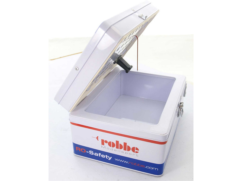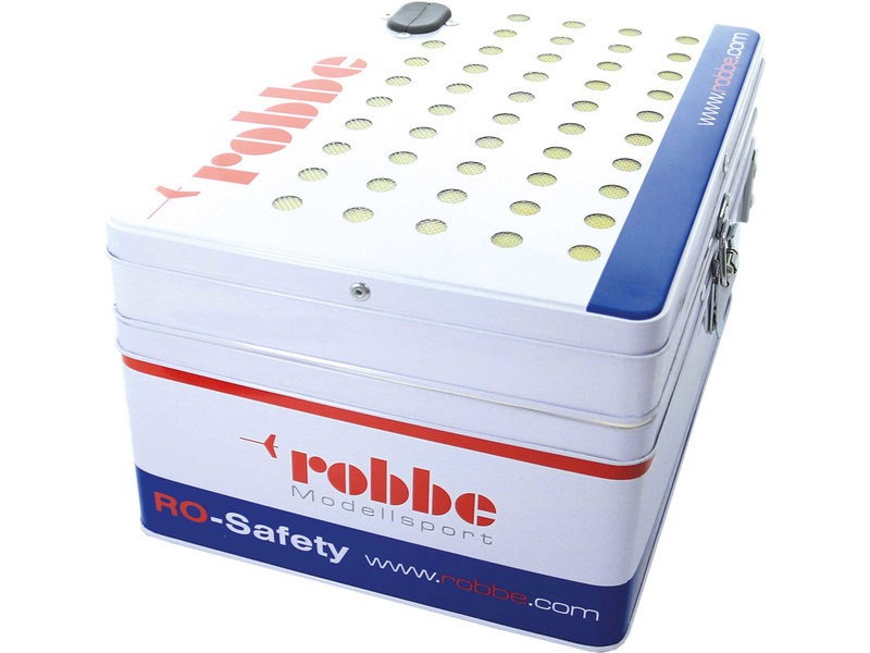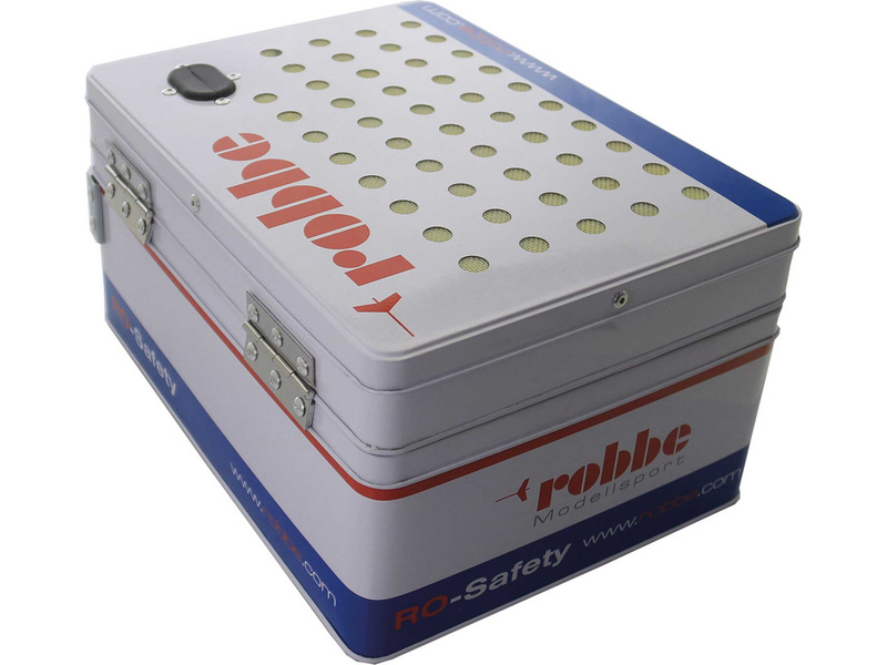 Bezpečnostní kovový kufr je určen k minimalizování rizika spojeného s nabíjením a uskladněním akumulátorů. Bezpečností průchodky pro vstup nabíjecích kabelů. Rozměry: 300x220x160 mm. Prostor pro 2ks 6S LiPo akumulátorů.