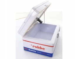 Bezpečnostní kovový kufr je určen k minimalizování rizika spojeného s nabíjením a uskladněním akumulátorů. Bezpečností nehořlavé průchodky umožňují vstup nabíjecích kabelů do kufru. V případě požáru baterií může výsledný tlak uvnitř uniknout ven přes bezpečnostní horní ventilační otvory, zároveň se kouř filtruje, aby se žádné škodlivé látky neuvolňovaly ven. Uvnitř kovového kufru může dojít k požáru s teplotou až 800 °C. Díky speciální izolaci se venkovní podlaha a stěny boxu ohřejí maximálně na 80 °C. Unikající plyn se nezahřeje na více než 150 °C.