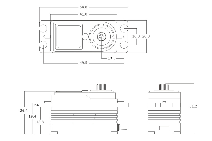 Přepracovaná generace BRUSCHLESS (střídavý motor) serva BH615S HV Low Profile speciálně navrženo pro 1/10 On-Road modely s reakční rychlostí až 0,045s a 15kg/cm tahu/točivého momentu. Servo využívá kombinované kovové a kompozitní pouzdro pro dosažení nižší váhy, zatímco střídavý motor a titanovo/hliníkové převody zajišťují vysoký výkon a trvanlivost. Servo je vybaveno JR konektorem o délce 180mm v černé barvě.