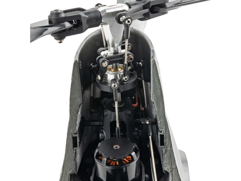 Digitální serva cykliky s kovovými převody, hliníkový blok rotorové hlavy a listy hlavního rotoru z uhlíkových vláken, poskytují vynikající odolnost a přesné ovládání.