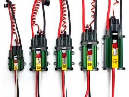 Regulátor je vybaven spínaným zdrojem BEC s programovatelným výstupním napětí v rozahu 5.0 až 8.4 V. Proudové omezení je 5.0 A.