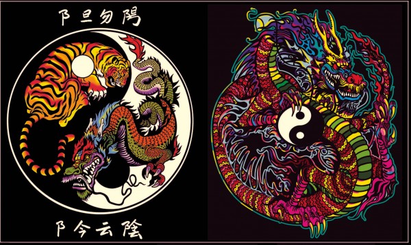 Sametové desky, dva obrázky - Yin Yang Drak.