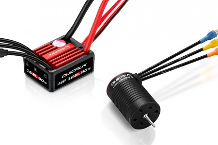 Combo střídavého regulátoru QUICRUN 16BL30 a bezsenzorového motoru QUICRUN 2435SL G3 4500KV. Ideální pro silniční a terénní auta 1:16/1:18 s napájením 2-3S LiPo.