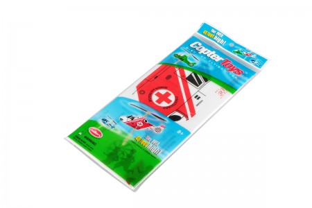Volně létající minivrtulník s plochým pěnovým trupem s gumovým pohonem. Model se skládá ze smrkového nosníku nesoucí „motor“ gumový svazek hlavicí s nosným rotorem s navlečenou stínovou maketrou trupu vrtulníku z pěnového polystyrenu, COPTER složíte a připravíte k letu za pár okamžiků – a létá až 12 m vysoko!