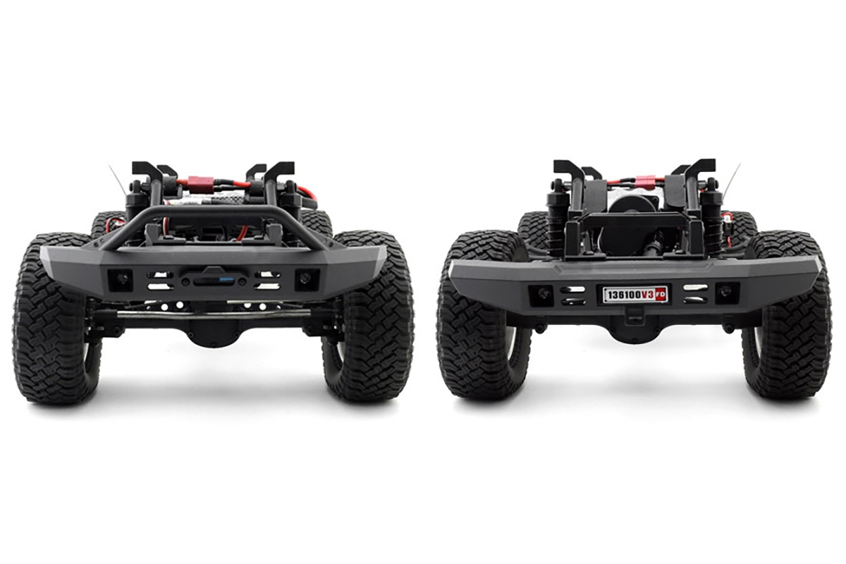 V3-FD používá integrované žebřiny podvozku, či nápravy se zvýšenou odolností a odjímatelnými kryty. Ozubená kola uvnitř byla upgradována na kovová. V3-FD díky předním CVA poloosám dosahuje maximálního úhlu zatáčení až 45 stupňů s pozitivním Ackermannem. Držák baterie umístěný v přední části omezí překlápění při prudkém stoupání.