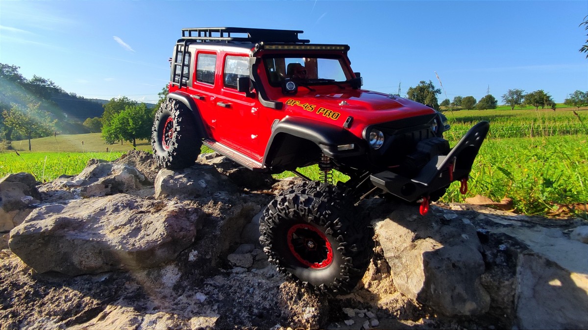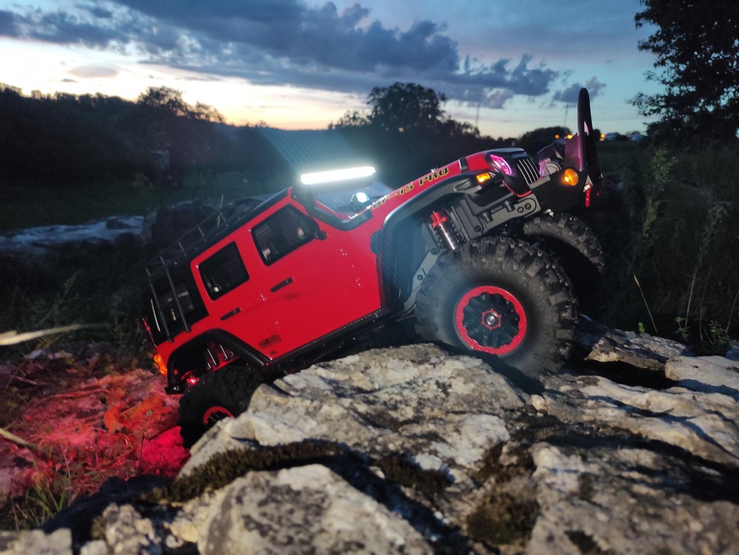 CRAWLER A RYCHLOSTNÍ AUTO V JEDNOM DÍKY DVOURYCHLOSTNÍ PŘEVODOVCE OVLÁDANÉ Z VYSÍLAČE * VYNIKAJÍCÍ PORTÁLOVÉ NÁPRAVY PRO MAXIMÁLNÍ PRŮCHODNOST TERÉNEM * DÁLKOVĚ UZAVÍRATELNÉ UZÁVĚRKY DIFERENCIÁLŮ * ŠPIČKOVÉ PROVEDENÍ VE STYLU JEEP WRANGLER RUBICON