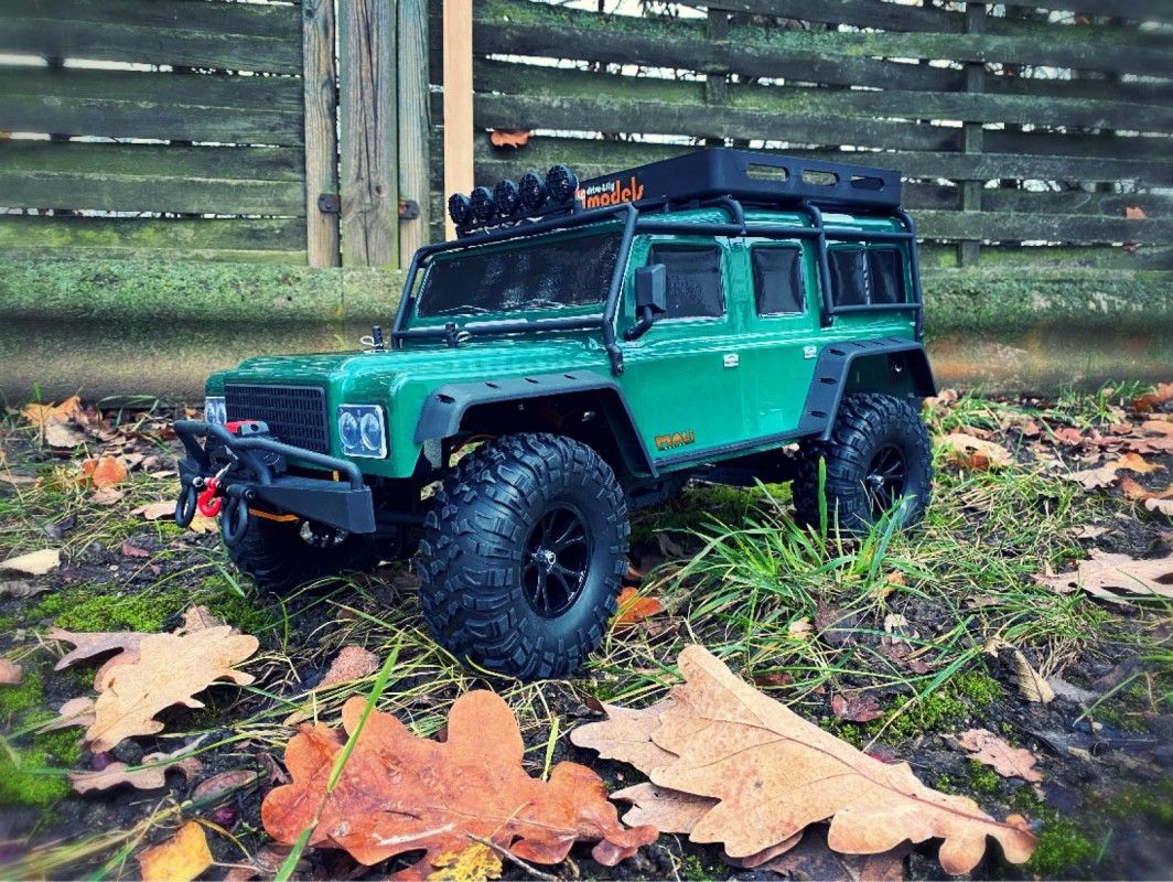 DF-4J XXL Crawler Edition v plné výbavě s navijákem, dvourychlostní převodovkou, hliníkovým rámem, dvourychlostní převodovkou, Hliníkovým rámem. Rámem LED světly, blinkry, brzdovými světly, 5CH vysílačem a regulátorem nastavitelným i pro LI-PO baterii.