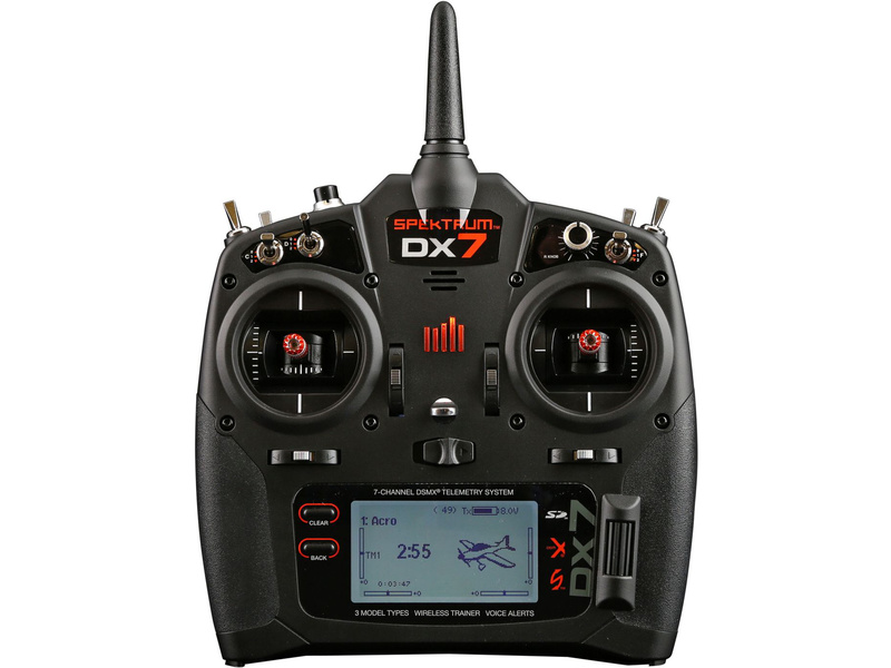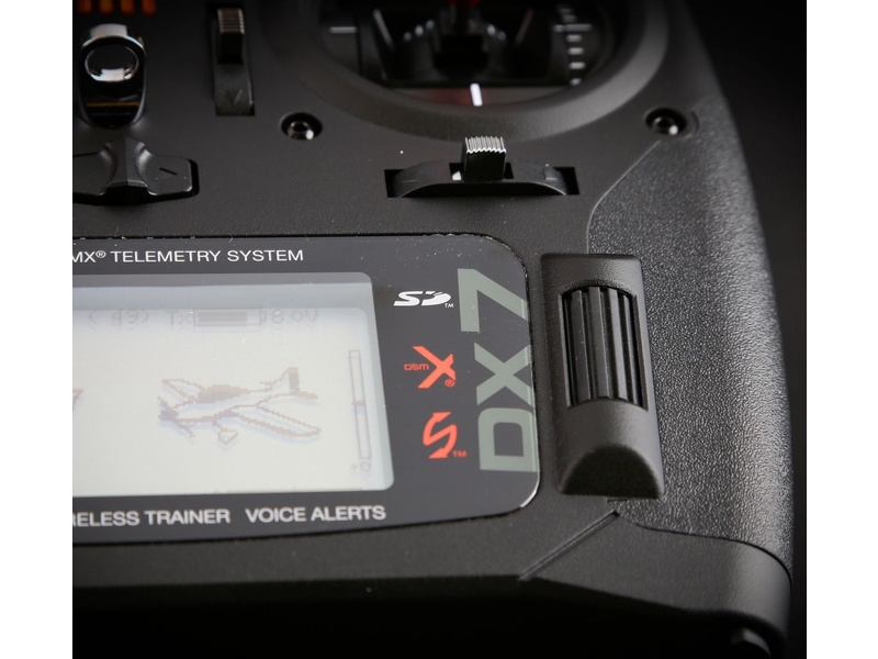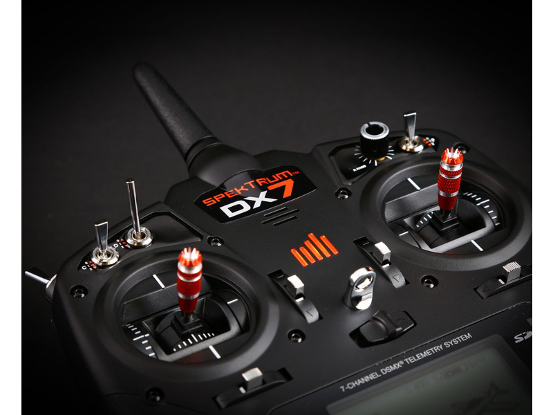 Vysílač Spektrum DX7 DSMX s telemetrií. 250 modelů v paměti vysílače, možnost varovných zvukových nebo vibračních upozornění, bezdrátový Učitel-žák, přehledný grafický displej, programy pro letadla, větroně a vrtulníky. Mód 1 - 4 vysílače lze podle potřeby změnit.