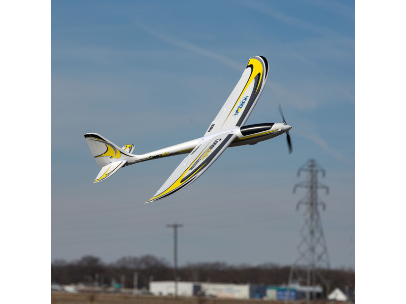 Motorový kluzák Conscendo Evolution se dodává v provedení Bind-N-Fly® Basic, takže pro uvedení do provozu stačí doplnit letecký vysílač Spektrum DSM2/DSMX a pohonnou LiPol baterii.