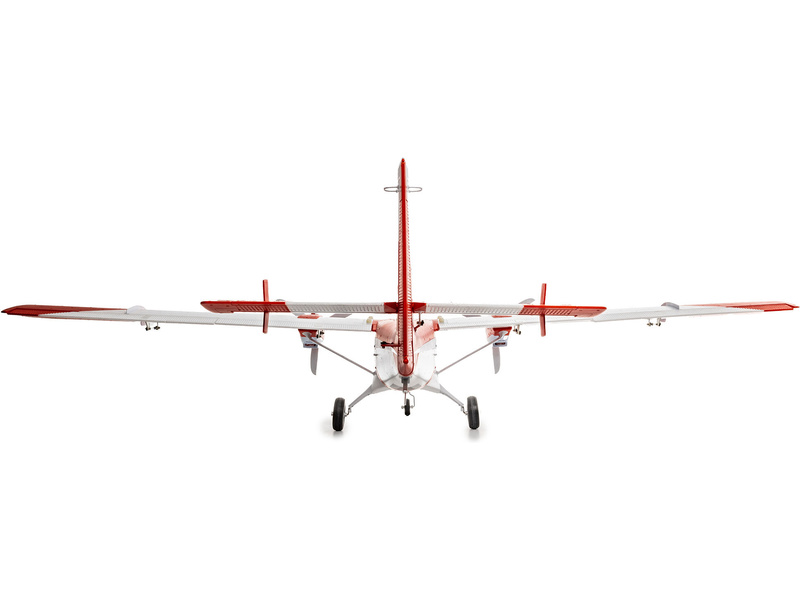 Dvoumotorový RC model letadla E-flite DHC-6 Twin Otter 1.4m, maketově zpracovaný podle užitkového letadla. Střídavé motory, napájení 3-4S LiPo, možnosti STOL (krátký start a přistání), vztlakové klapky, LED osvětlení.
