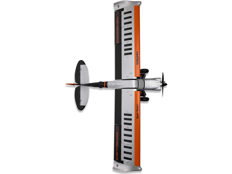 RC model letadla E-flite Micro Scrappy s rozpětím 0.8m je licencovanou replikou letounu známého pilota a konstruktéra Mike Pateyho. Stejně jako originál i model obsahuje vlastnosti STOL (vzlet a přistání na krátké dráze), odpružený podvozek s velkými měkkými pneumatikami ve stylu Tundra, vztlakové klapky, řiditelnou ostruhu a atraktivní LED osvětlení. Výkonný střídavý motor se speciální 4listou vrtulí umožňuje napájení 3S nebo 4S LiPo akumulátorem. To zajišťuje pohodové i sportovnější akrobatické létání pro mírně pokročilé a pokročilé piloty. Tato verze BNF Basic je vybavena přijímačem Spektrum s vylepšenou technologií AS3X+, která ještě lépe stabilizuje let za větru a v turbulenci, a také volitelným systémem SAFE Select pro snadnější a bezpečnější ovládání.