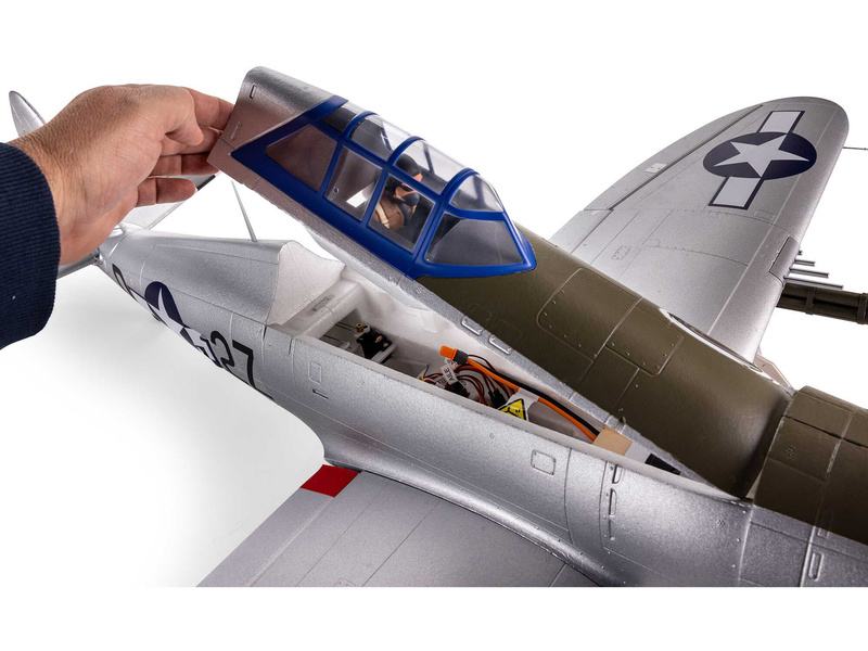 Model je zbarven v kamufláži stroje P-47, který létal u 510. perutě se 405. stíhací skupinou, během druhé světové války. Vyznačuje se řadou maketových detailů, včetně tvarovaných linií panelů, volitelné přídavné nádrže a výzbroje, čtyřlisté vrtule a další. Pro konečnou montáž nepotřebujete lepidlo, proto můžete mít model připraven k letu za kratší dobu, než je ho potřeba k nabití baterie. Vhodná je i velikost pro skladování a přepravu bez nutnosti demontáže, nebo jednodílné křídlo lze snadno demontovat pro ještě snadnější přepravu a skladování.