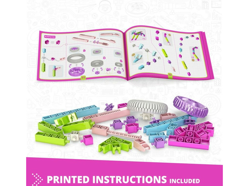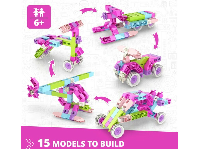 Stavebnice Engino Creative Builder Designer 15 modelů, určená pro dívky, která je inspiruje ke kreativnímu hraní a zábavnou formou budou objevovat úžasný svět vědy, techniky a inženýrství. Sestavte 15 unikátních modelů pomocí návodu a mnoho dalších podle své fantazie. Počet dílů v balení: 74. Věk 6-12 let.