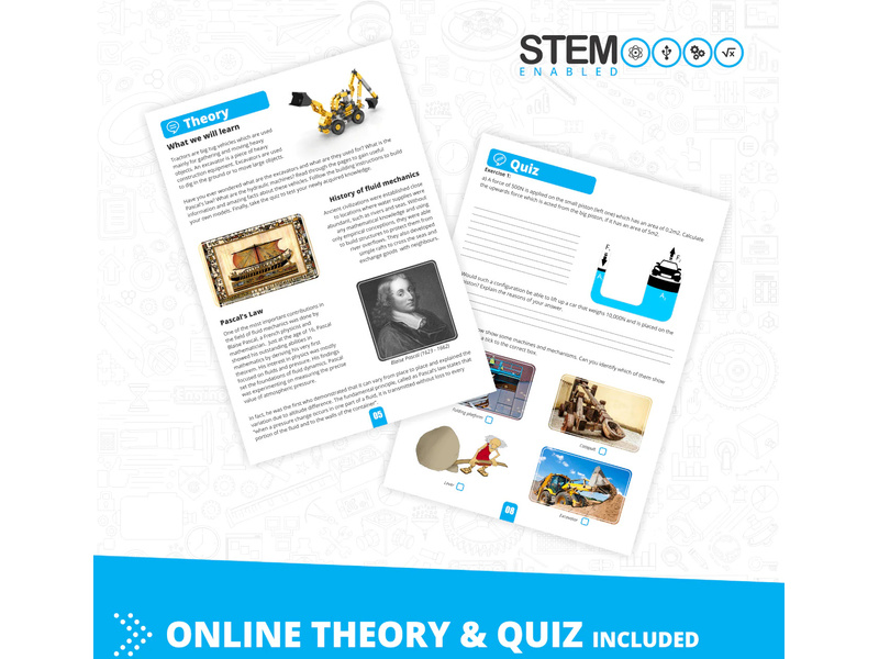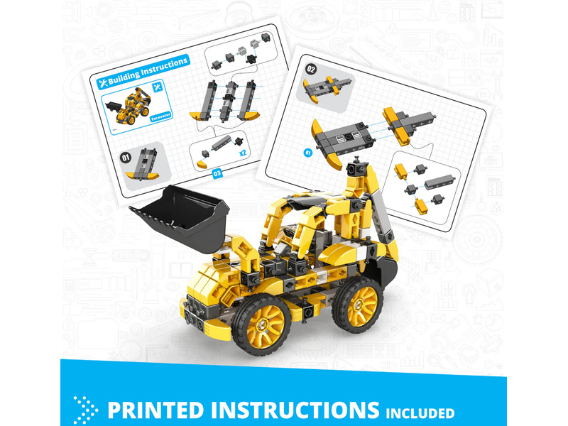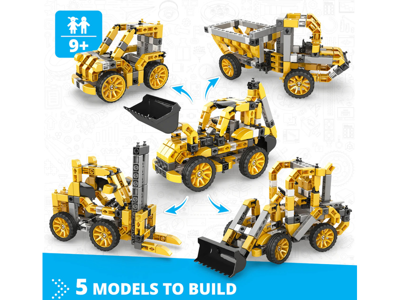 Stavebnice pro děti od 9 let, Engino Inventor Mechanics bagr, sestavit lze 5 různých modelů stavebních strojů, jako nákladní auto, bagr, nakladač, vysokozdvižný vozík a auto. Jednoduchá kreativní stavebnice pro děti, s možností využít stávající díly k dalším stavebnicím Engino. Obrázkový přehledný barevný návod.