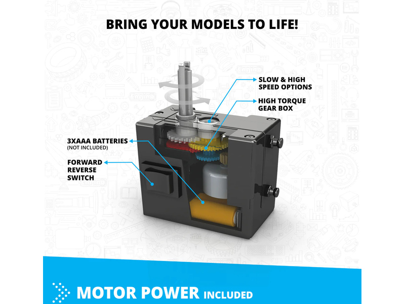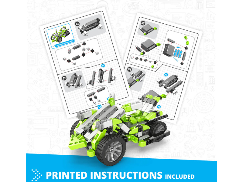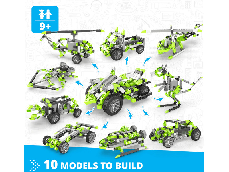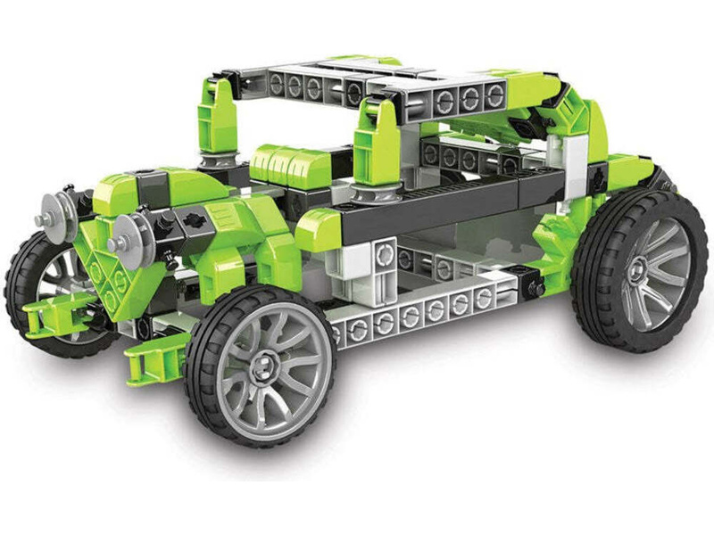 Stavebnice pro děti od 9 let, Engino Inventor Mechanics čtyřkolka, sestavit lze 10 různých modelů aut, letadel, vrtulníků, strojů, apod. Kreativní stavebnice s pohonnou jednotkou na baterie a sadou ozubených kol, s možností využít stávající díly k dalším stavebnicím Engino. Obrázkový přehledný barevný návod.