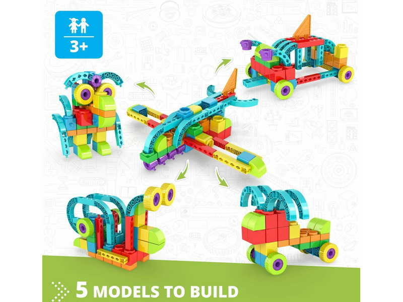 Stavebnice Engino Qboidz letadlo - 5 modelů pro děti předškolního věku. Systém QBOIDZ slouží jako pozoruhodná platforma, která rozvíjí kognitivní, sociální a motorické dovednosti u dětí, a to vše prostřednictvím poutavé a nápadité hry. Investujte do světa kreativity a růstu pro své dítě.