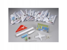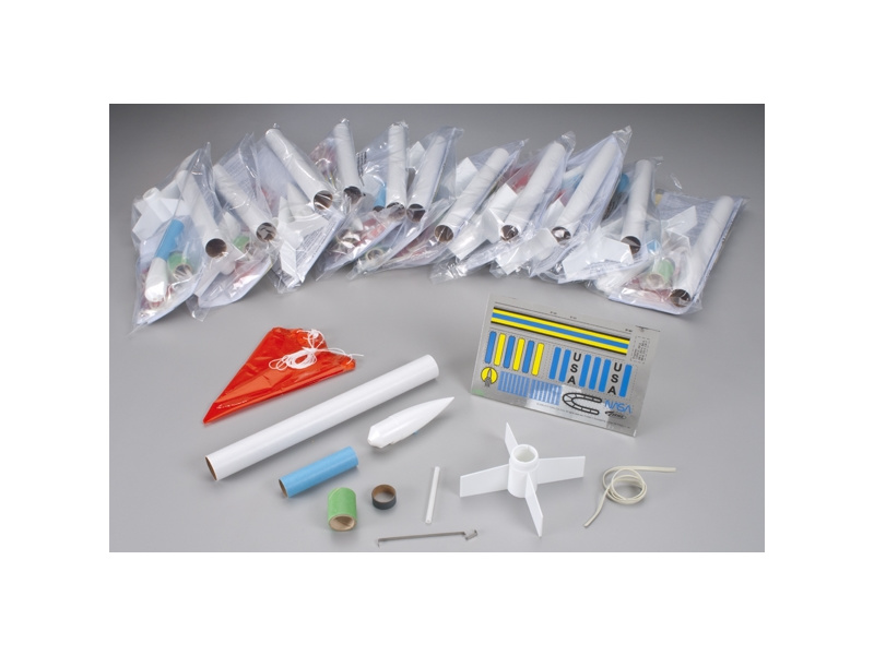Balení obsahuje: tubusy, špice, stabilizátory, držáky motorů, padáky, pro stavbu 12 raket, návod CZ, manuál EN.