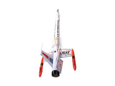 Model rakety Estes Interceptor na raketové motory řady B - C . Interceptor je zajímavá raketa s futuristickým vzhledem trupu. Sci-fi raketa, která dosáhne výšky až 160 metrů.