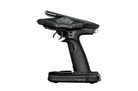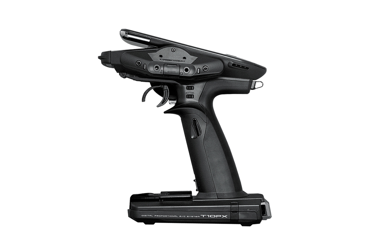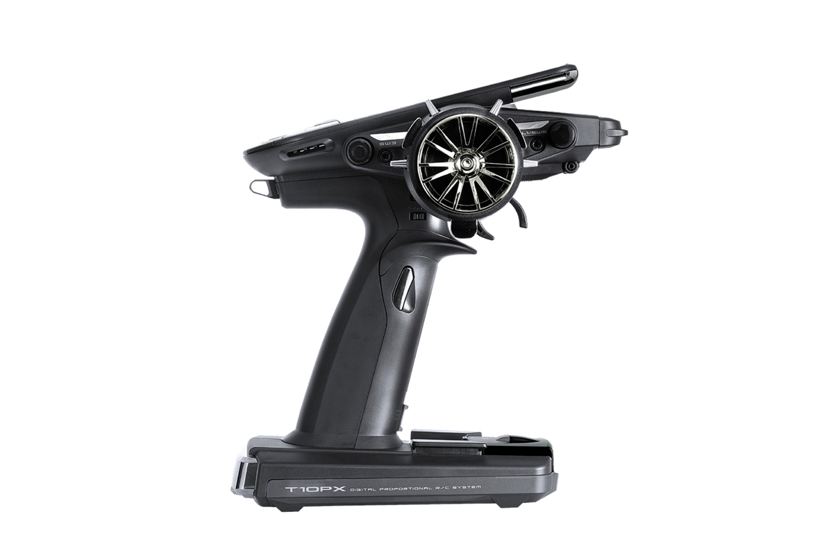 Vysílač T10PX v klasickém volantovém designu s rukojetí dokonale padnoucí do ruky je vybaven volantovým ovladačem řízení, spouští pro ovládání plynu, osmi tlačítkovými přepínači, jedním otočným ovladačem kombinovaným s tlačítkovým přepínačem a šesti digitálními trimy (4 okolo volantu, 2 na rukojeti). Ovládací prvky jsou uspořádány (popř. zdvojeny) pro ovládání praváky i leváky (s volantem přemístitelným na levou nebo pravou stranu). Volant i spoušť plynu mají bohaté možnosti mechanického nastavení pro dokonalé přizpůsobení vašim rukám a stylu řízení. K programování slouží dvojice tlačítek a velký podsvícený barevný dotykový LCD displej zajišťující snadnou orientaci v intuitivním menu. T10PX má paměť pro 40 modelů neomezeně rozšiřitelnou pomocí mikroSD karty a širokou škálu pokročilých programových funkcí pro běžné i speciální modely aut - např. nezávislé řízení a pohon (se 2 regulátory) předních i zadních kol pro crawlery, dvojokruhové brzdy pro velké modely 1:5, gyro pro drifting, ABS, kontrola trakce, mix pro tanky apod. Můžete přepínat až 4 jízdní režimy s odlišným nastavením mnoha programových funkcí zaručující ideální přizpůsobení nastavení auta podmínkám na různých místech závodní trati nebo měnícím se povětrnostním podmínkám atd.