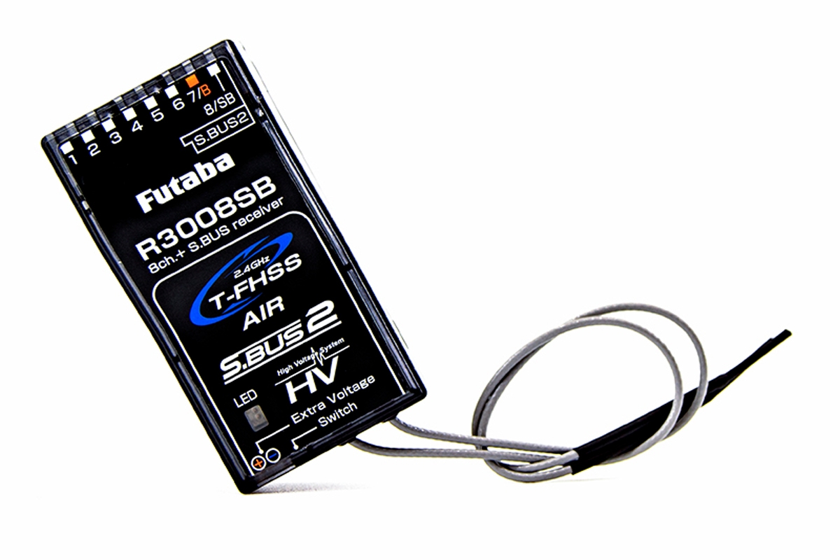 Šestikanálový přijímač Futaba S-FHSS/FHSS-2.4GHz pro všeobecné použití. Napájení 4,8-7,4 V, rozměry 43,1x25,0x8,8 mm, hmotnost 8,5 g. Diverzitní antény.