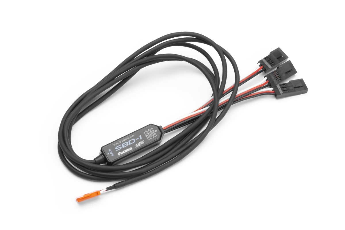 Kabelový dekodér S-BUS umožňující připojení až tří klasických serv k sériové sběrnici S-BUS, vhodný pro analogová i digitální serva se standardním napájením 4,8-6,0 V (4-5čl. NiMH). Nelze použít pro sběrnici S-BUS2.