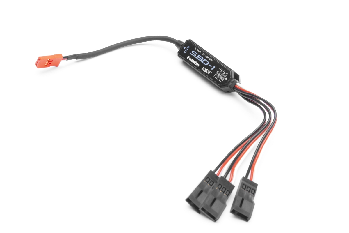 Kabelový dekodér S-BUS umožňující připojení až tří klasických serv k sériové sběrnici S-BUS, vhodný pro analogová i digitální serva se standardním napájením 4,8-6,0 V (4-5čl. NiMH). Nelze použít pro sběrnici S-BUS2.