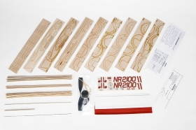 Stavebnice obsahuje: balsové laserem vyřezávané díly, balsové nosníky, vakuově lisované díly (kryt motoru, kryt kabiny...), plastovou vrtuli s hřídelí a hlavicí, gumový svazek (soutěžní guma FAI TAN II), kola, ocelovou strunu na podvozek a další drobné díly, barevný potahový papír, aršík samolepek, stavební plán.
