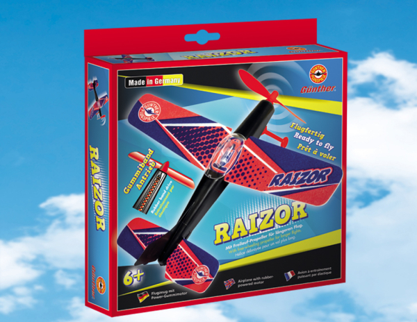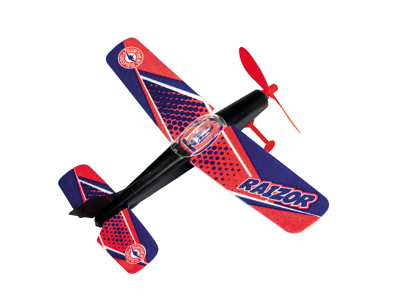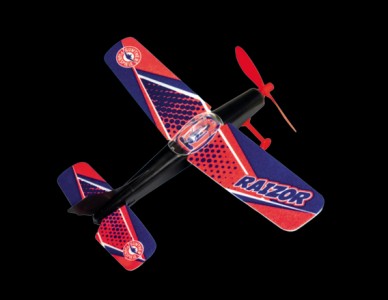 Model letadla na gumu Raizor s pohonem na gumový svazek.