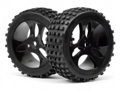 Nalepené pneumatiky na plastových diskách.