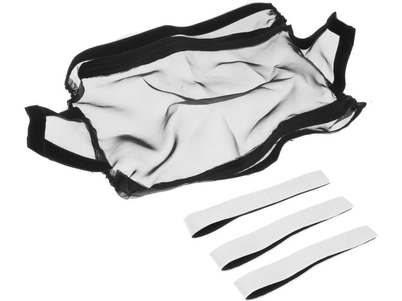Nasaďte H-Speed protiprachový kryt seshora na podvozek a přehněte lemy na bok nebo pod šasí. Srovnejte a upravte polohu krytu a aplikujte přiloženou oboustrannou pásku suchého zipu přilepením na šasí. Pomocí zdrhovadla na obou stranách můžete protiprachový kryt odejmout.