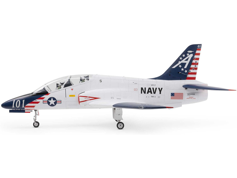 RC model Hangar 9 Hawk/T-45 je sportovní polomaketa proudové cvičné stíhačky amerického námořnictva s rozpětím křídel 2.5m, určená pro spalovací turbíny s tahem 140–160N, dle vašeho výběru. Hotový, potažený trup a křídla mají dřevěnou konstrukci vyztuženou uhlíkem. Špičkové materiály, zpracování a design Vám umožní autentický předvídatelný let s výbornými schopnostmi pro provádění pokročilé akrobacie. Kromě motoru je nutné do modelu provést zástavbu elektronikou - servy a přijímačem, doplnit akumulátor a vysílač (zmíněné komponenty se prodávají samostatně). Model, který vás svým vzhledem oslní ve vzduchu i na zemi obsahuje detailní kabinu s bustami pilotů a je proveden ve zbarvení VT-7 „Betsy Ross“.
