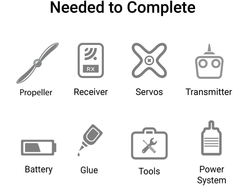 Stavebnici je potřeba sestavit, k tomu je potřeba mít vhodné lepidla, např. sekundové a 2-složkové Epoxy a na lepení kabiny, dále dvoutaktní nebo čtyřtaktní benzínový motor o objemu 20 cm3 nebo ekvivalentní elektromotor (60BL), vhodnou RC soupravu min. je 7- kanálovou, lépe 9 kanálovou, pokud budete chtít samostatně seřídit všechny serva, potřebujete 10-kanálovou. Osm serv standardní velikosti 5,5-7 kg.cm, prodlužovací kabely, baterie přijímače (pro variantu s benzínovým pohonem) nebo pohonná (pro elektro verzi), vrtule. Volitelně lze doplnit zatahovací podvozek.