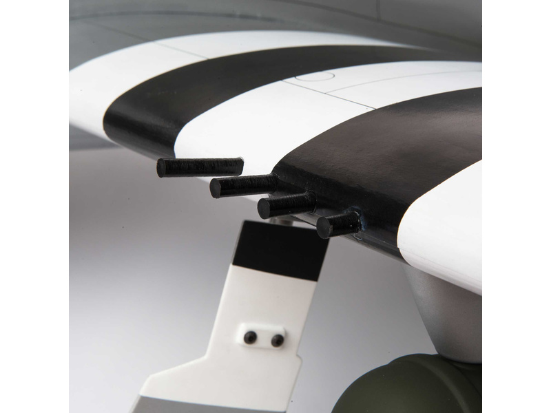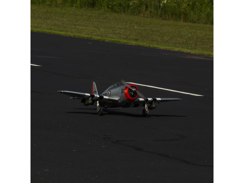Americká legenda, těžký stíhač P-47D Thunderbolt v modelářském provedení. RC model o rozpětí 1,7 m je celodřevěné konstrukce s hotovou kamufláží. Motor lze doporučit benzínový 20cc nebo elektromotor, model má vztlakové klapky a pevný podvozek, který lze vyměnit za zatahovací elektrický E-flite. Má kabinu vybavenou figurkou pilota, řízené ostruhové kolečko, řadu maketových prvků. Dvoudílná konstrukce křídla usnadňuje přepravu a skladování. Bohatá povrchová úprava se saténovým finišem, jemné přechody barev a detaily panelových linií vytvářejí realistický vzhled hodný muzejní expozice. Součástí balení jsou různé varianty samolepek pro možnost vlastního přizpůsobení.