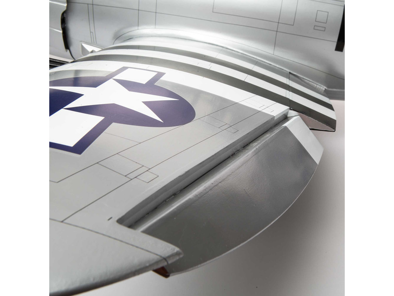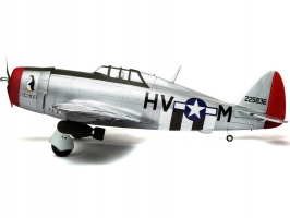 Americká legenda, stíhač P-47D Thunderbolt o rozpětí 1,7m, má celodřevěnou konstrukci, vztlakové klapky a pevný podvozek, který lze vyměnit za zatahovací elektrický E-flite. Kabina s figurkou pilota, řízené ostruhové kolečko, řada maketových prvků. Verze ARF vyžaduje doplnění vlastního pohonu a elektroniky.