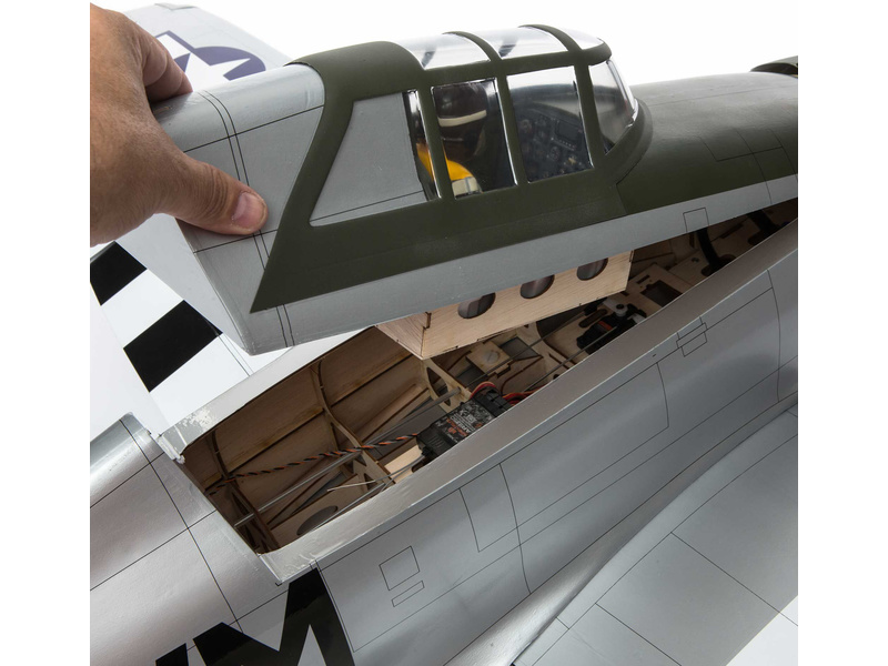 Rozměrný kryt na trupu je velmi potřebný pro přístup k elektronice a bateriím, proto je i v modelu P-47D Thunderbolt vše vyřešeno tak, aby uživatel měl zaručen co nejvyšší komfort. S tím souvisí i odnímací 2-dílné křídlo, které lze pro transport snadno odejmout.