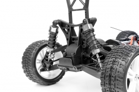 Podvozek má nezávislé zavěšení kol a horní ramena i spojovačky řízení jsou vybaveny spojovačkami s šestihranem a pravo/levým závitem pro snadné nastavení a seřízení geometrie podvozku. Jistotu a stabilitu při jízdě modelu dodávají olejové tlumiče.