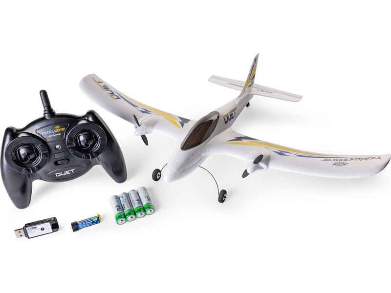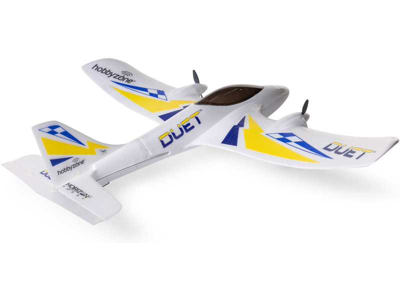 Vítejte ve vzrušujícím světě RC (rádiem řízeného) létání! Pokud jste někdy snili o tom, že se naučíte létat s dálkově řízenými modely, jste nyní jen krůček od splnění svého snu. I když jste ještě nikdy neletěli s modelem letadla, je Duet S 2 skvělou volbou, se kterým lze létat na louce, v parcích, fotbalových hřištích a dalších vhodných prostorech, kam se větší modely nevejdou. Je vybaven exkluzivní a inovativní technologií SAFE® (Sensor Assisted Flight Envelope) společnosti Horizon Hobby, která pomáhá předcházet ztrátě orientace a pádům, proto se můžete snadněji naučit létat. Režimy pro začátečníky a zkušené, vám umožní vybrat si úroveň stability a kontroly, kterou potřebujete nebo jste připraveni vyzkoušet, pouhým stisknutím řídící páčky. Je také vybaven telemetrickými funkcemi, které posílají úroveň napětí letové baterie do vysílače, aby si pilot ověřill, kolik času přibližně zbývá do konce letu. 3-kanálové ovládání nabízí ovládání výškovky (stoupání/klesání), řízení a ovládání plynu, zatímco dva elektromotory poskytují dostatek výkonu a diferenciální tah pro řízení směru letu.