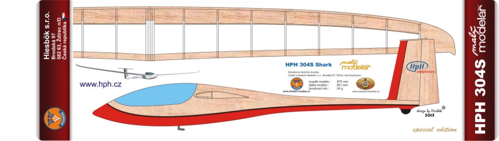 Stavebnice balsového volného modelu kluzáku HPH 304S - Malý modelář.